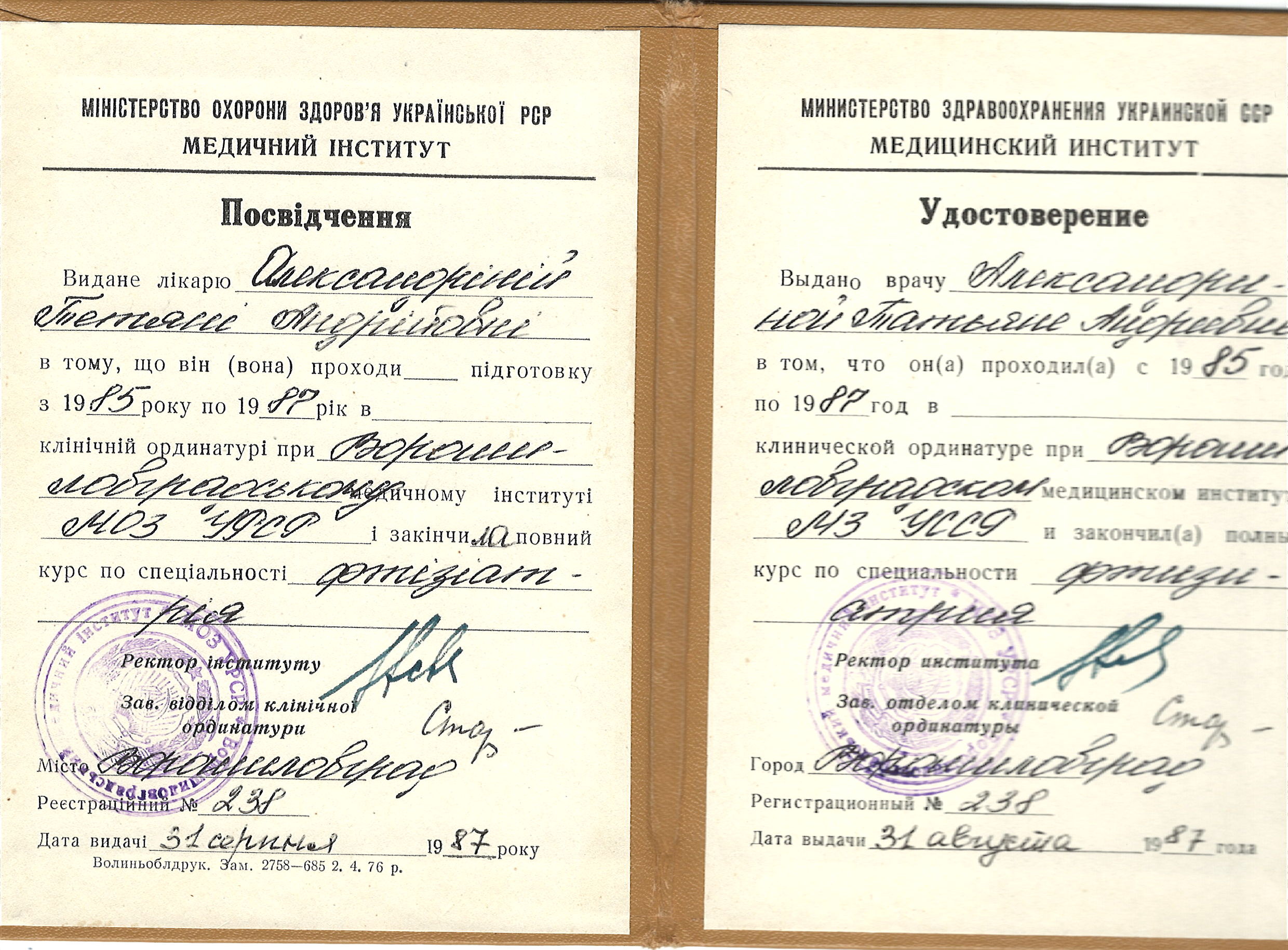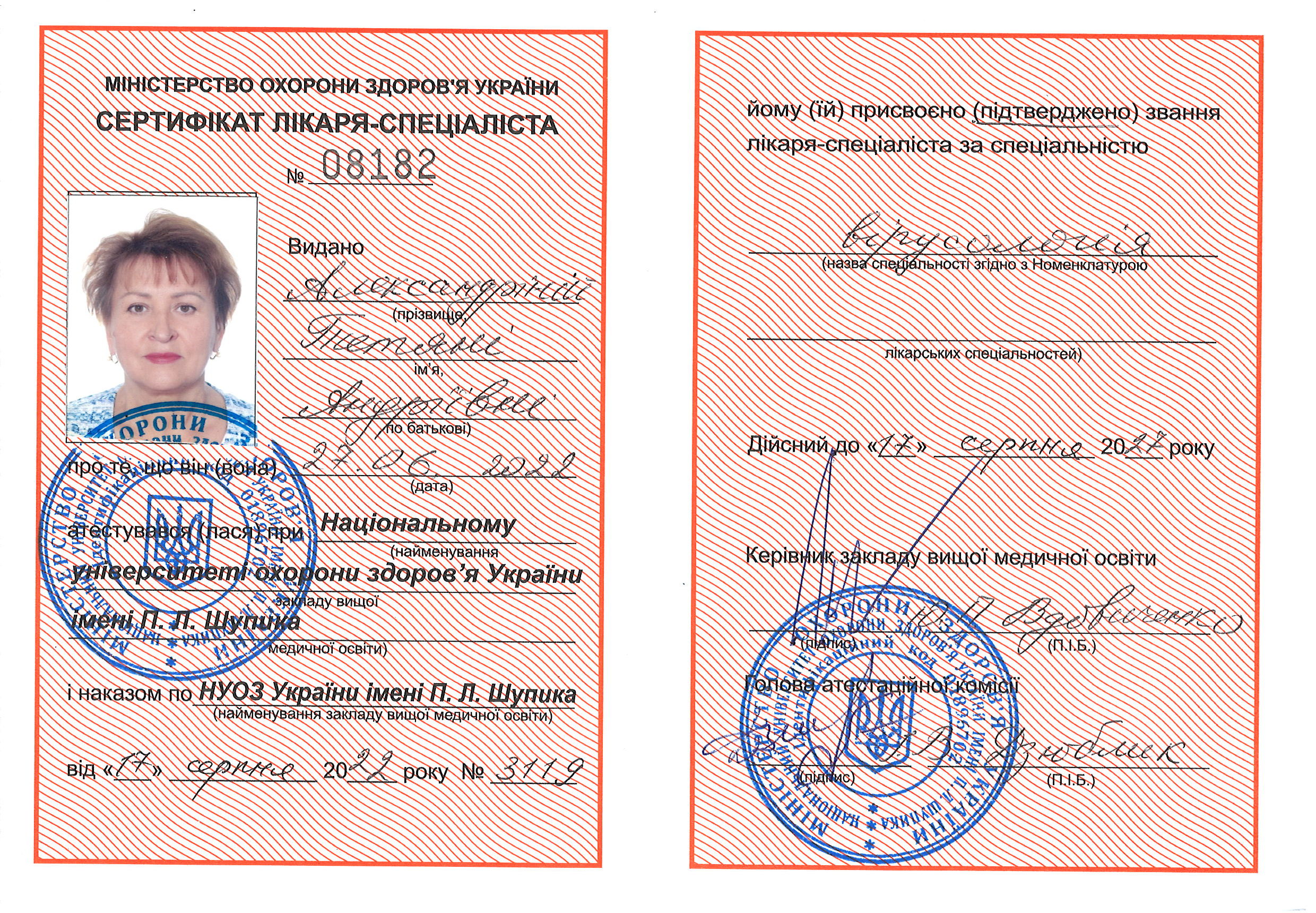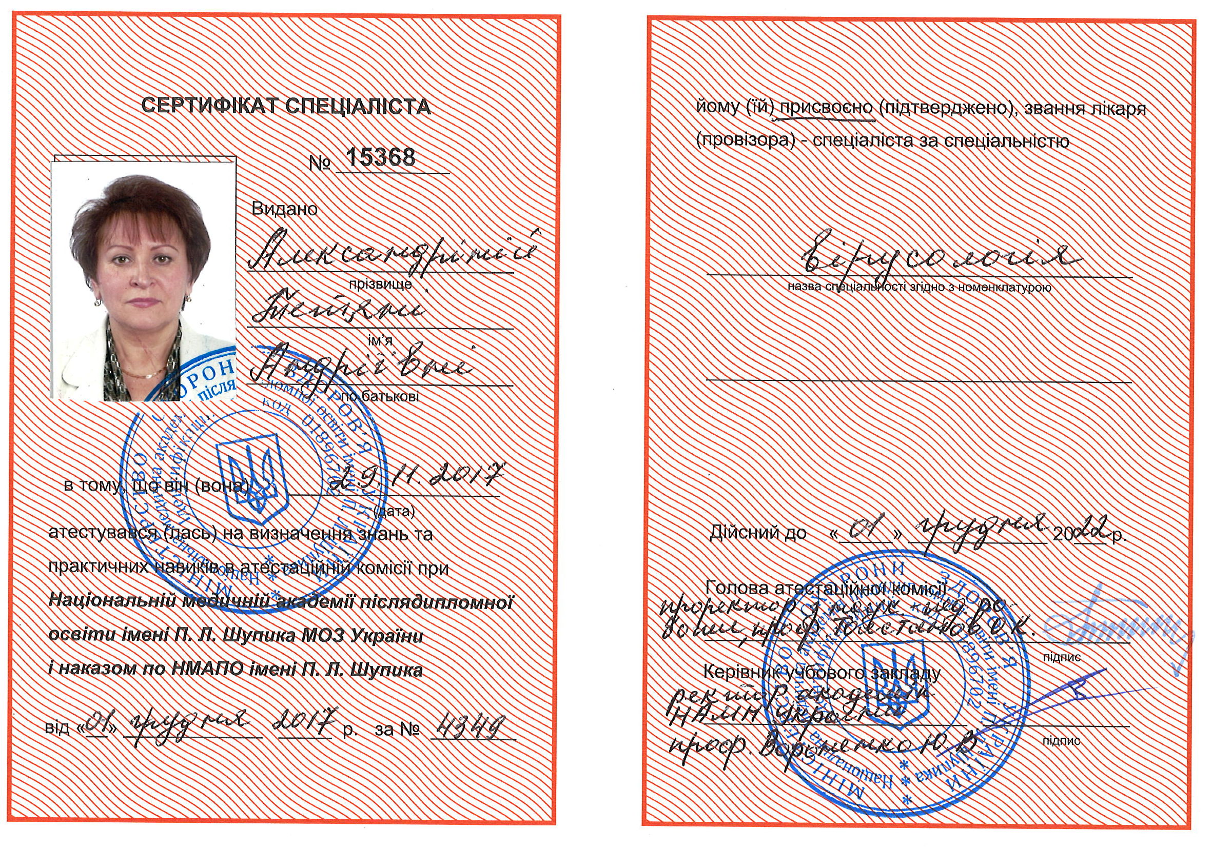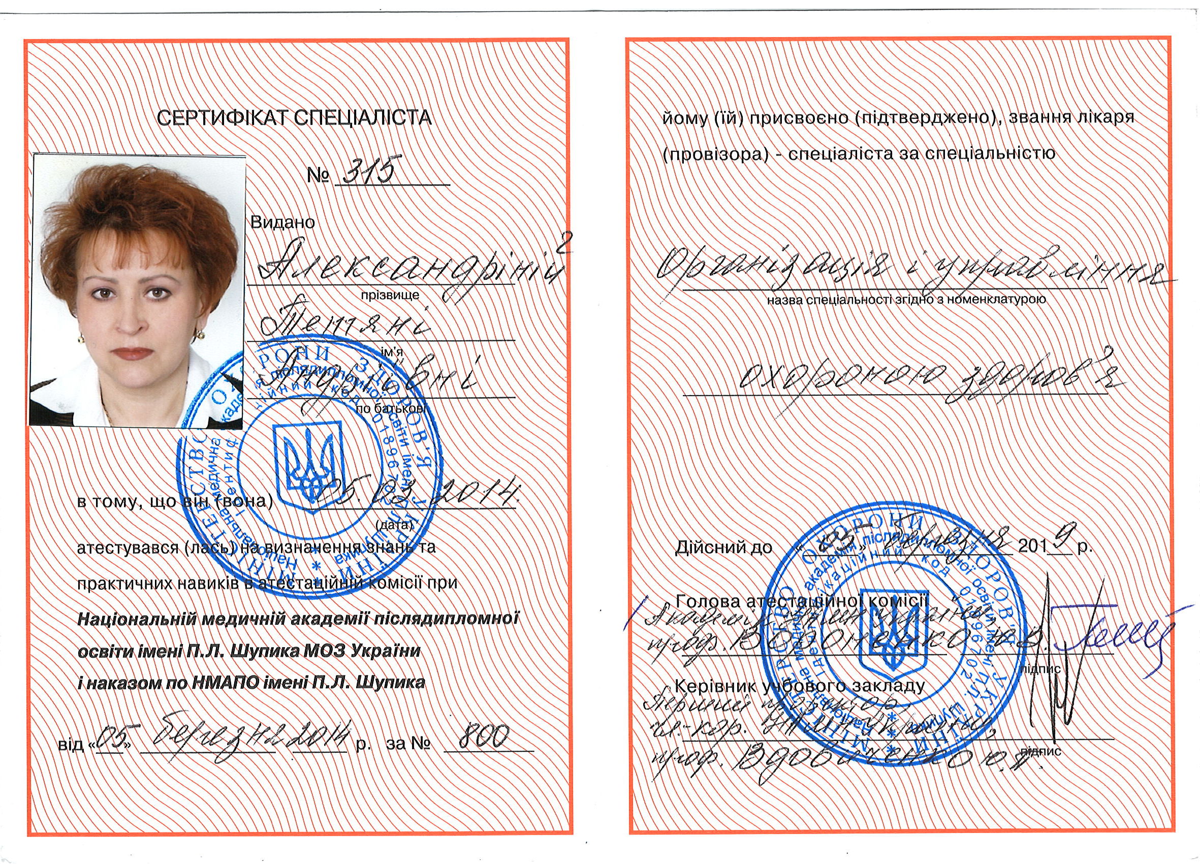 Education. She graduated from the Voroshilovgrad Medical Institute in 1981, majoring in Medicine. In 1987, she completed her clinical residency at the department of phthisiology of the Luhansk State Medical University.